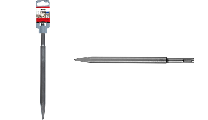 Cincel, vástago de inserción SDS plus, acero especial de alta calidad, superficie granallada de acero, de desgaste reducido, reparto óptimo del peso para un elevado rendimiento de arranque. Optimizada en cuanto a las vibraciones.